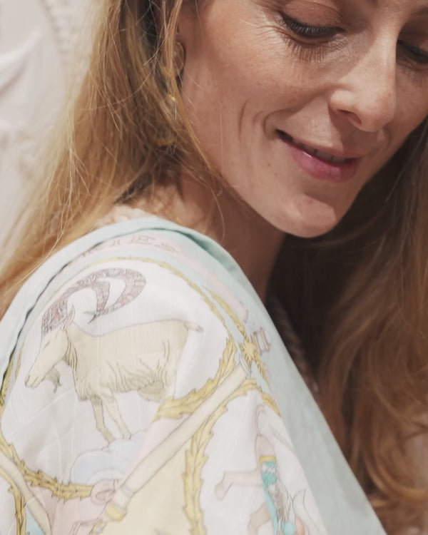 Atelier Choux Carré – Zodiac Blue is a multi-functional piece for elegant daily use — perfect as a swaddle, lightweight blanket, stroller accent, or decorative photo background.